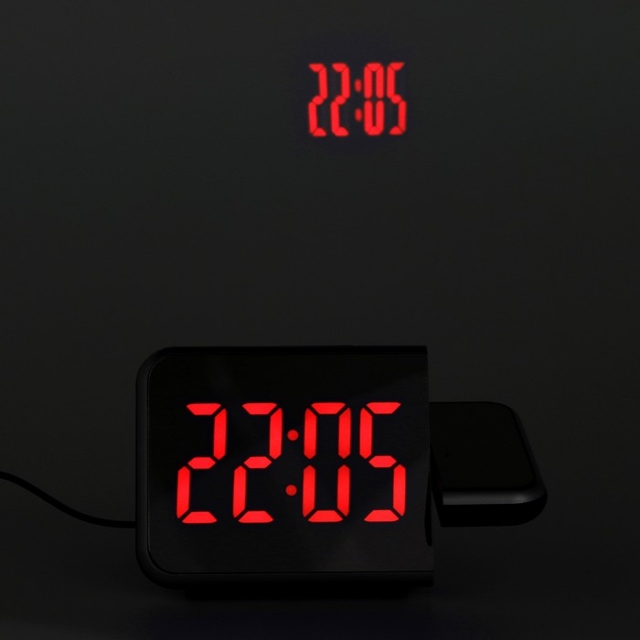 Часы - будильник электронные настольные с проекцией на потолок, календарем, 2ААА, USB