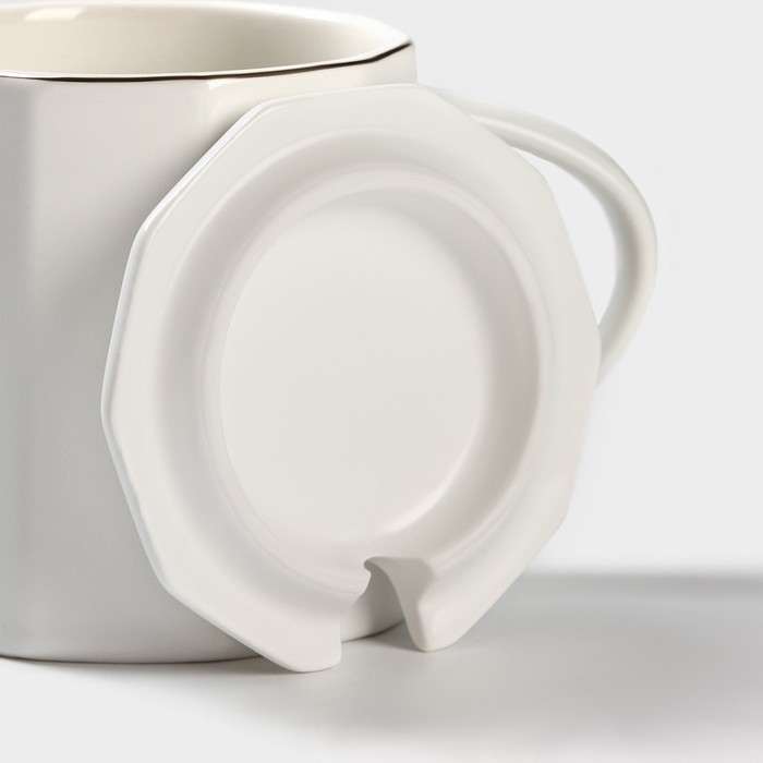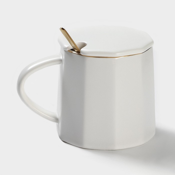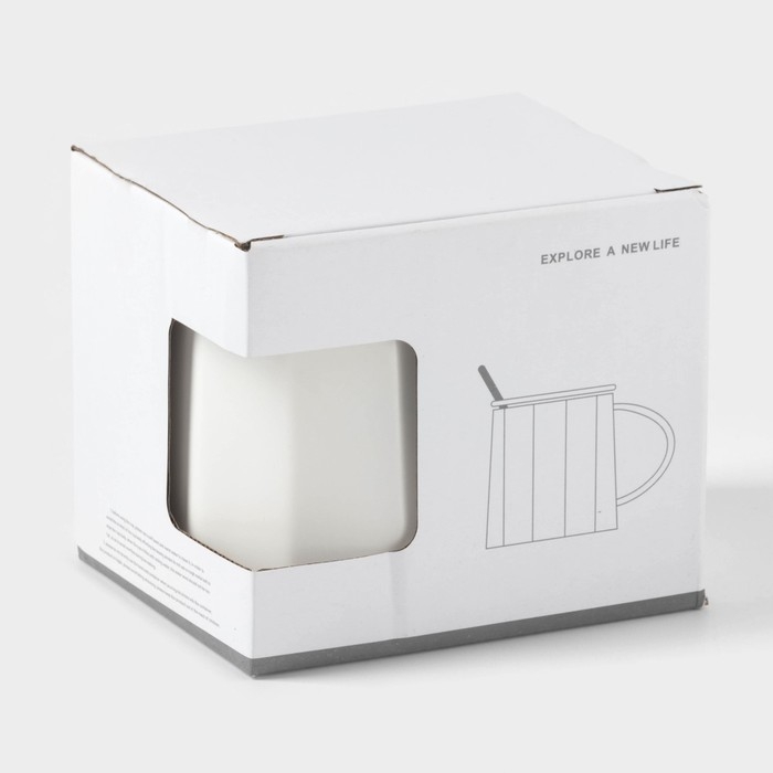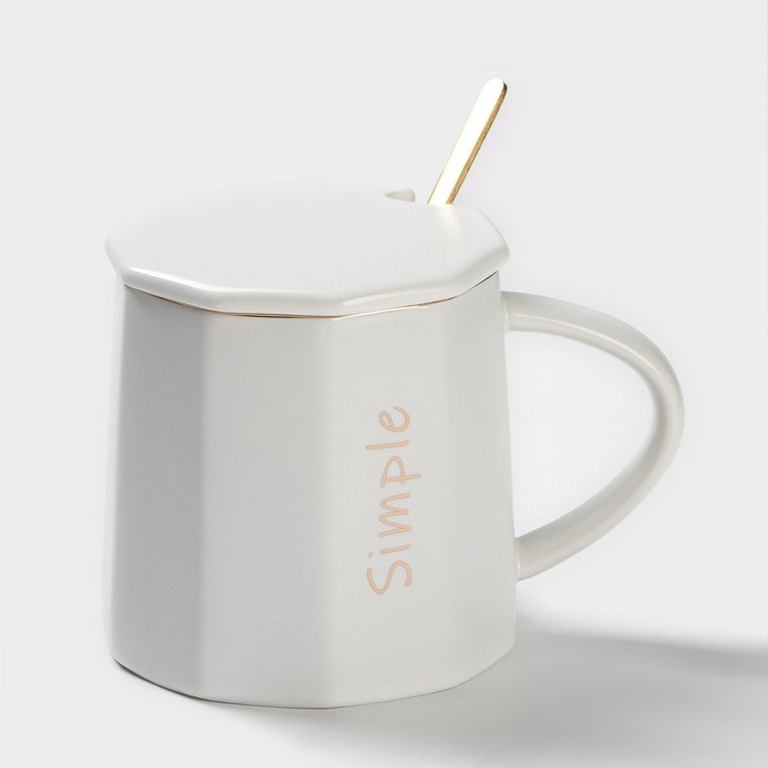 Кружка керамическая с ложкой Simple, 350 мл, цвет белый