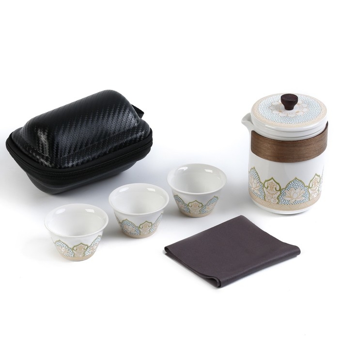 Портативный чайный набор, благодаря компактному чехлу с ручкой, удобно брать с собой на природу, в гости, на дачу. Посуда подходит как для торжественных чайных церемоний, так и для повседневного домашнего использования. Изделие изготовлено из прочной керамики.