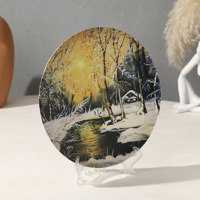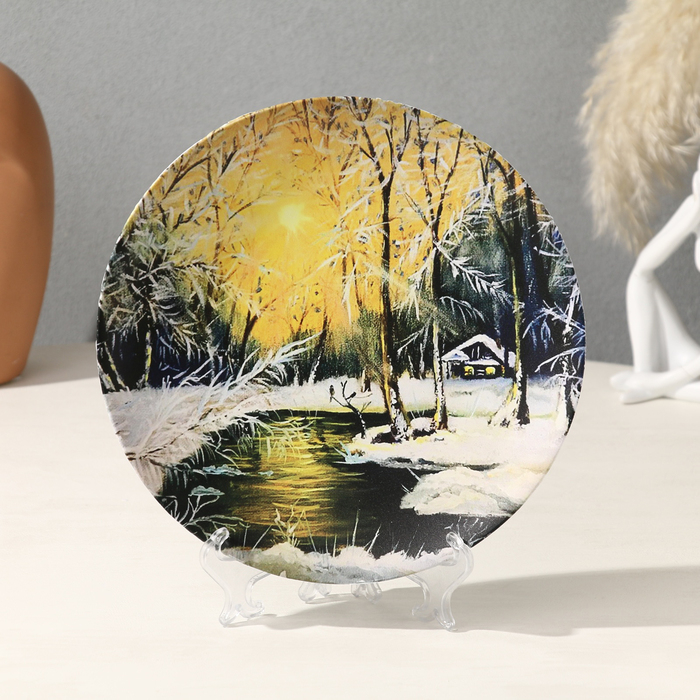 Тарелка декоративная «Зимний лес», с рисунком на холсте, D = 19,5 см