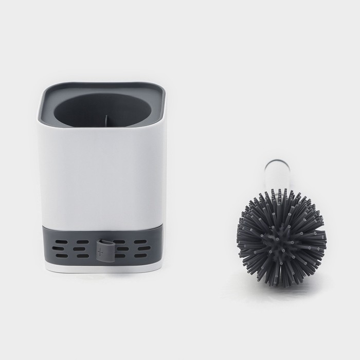 Ёршик для унитаза SAVANNA, настенный, силиконовый с емкостью для моющего средства, 10.5×10.5×41 см, белый