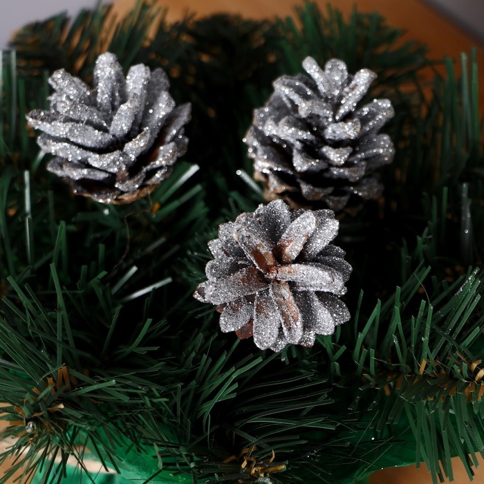 Новогодняя композиция "Рождественская" шишки серебро 20 см