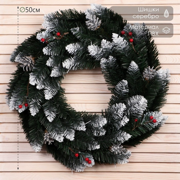 Новогодний венок "Интерьерный белоснежный"шишка серебро + ягода 50 см