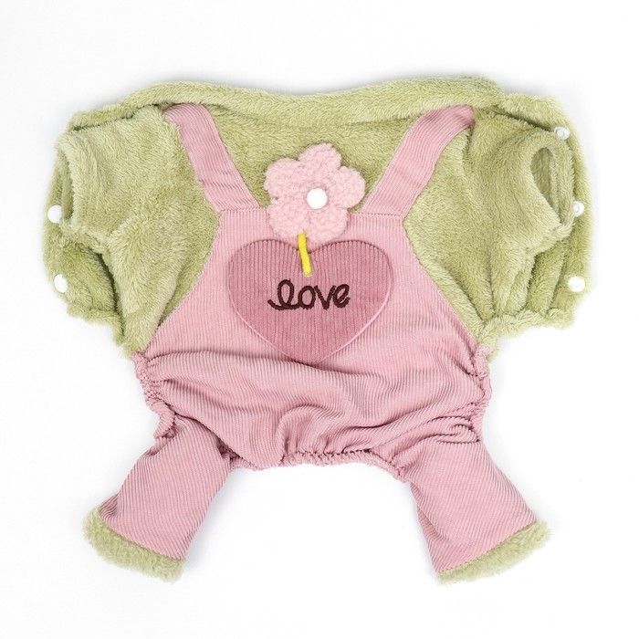 Комбинезон "Love", размер L (ДС 35 см, ОГ 45 см, ОШ 35 см), зелёный/розовый