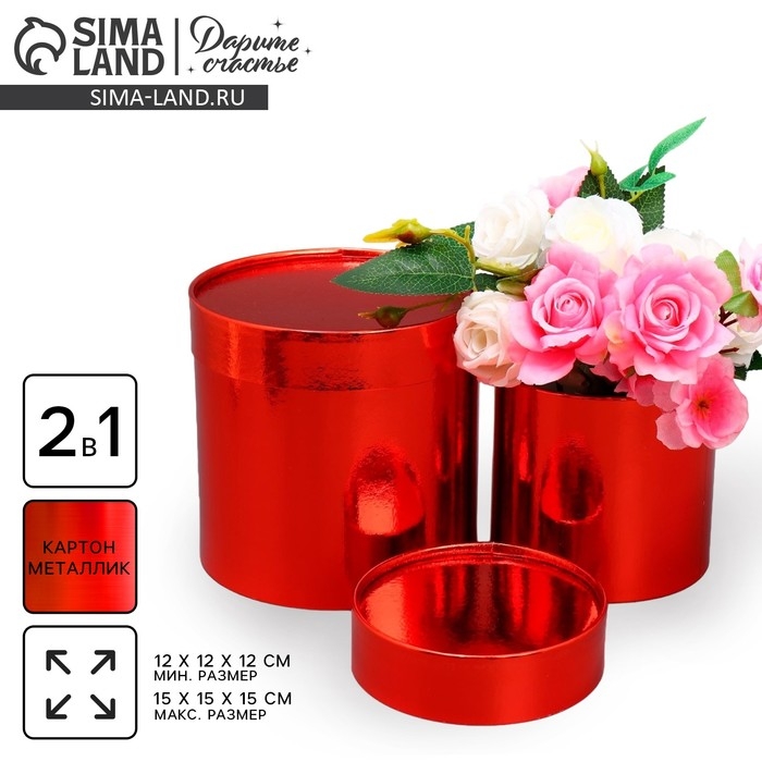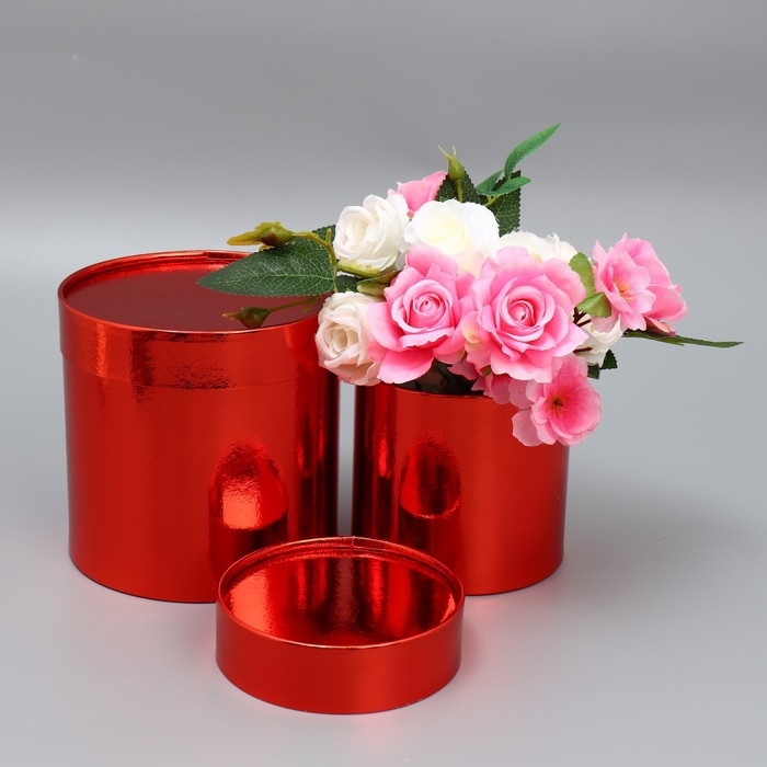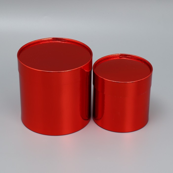 Набор коробок 2в1 круглые «Однотонный», красный металлик, 12 х 12, 15 х 15 см, Новый год