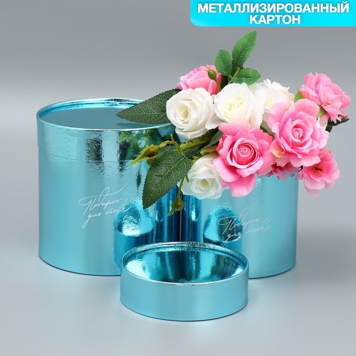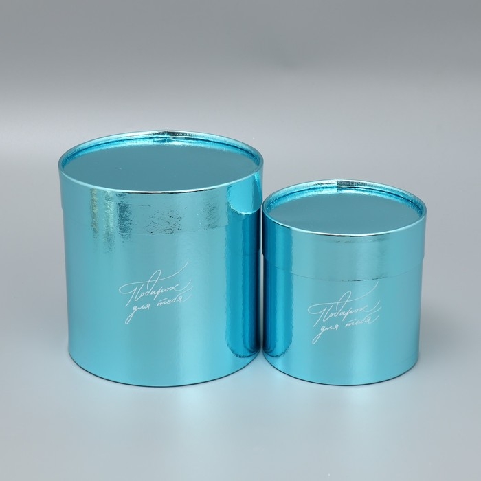 Набор коробок 2 в 1 круглые, упаковка подарочная, «Подарок для тебя», голубой металлик, 12 х 12, 15 х 15 см