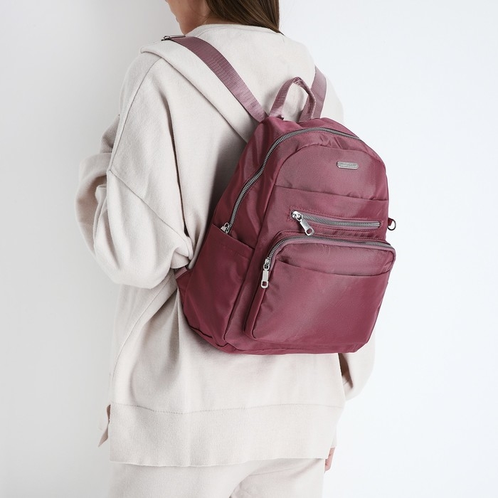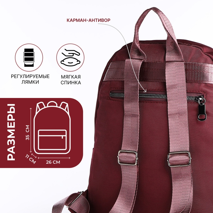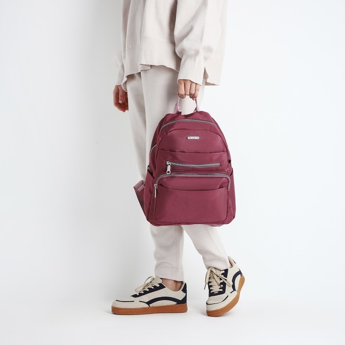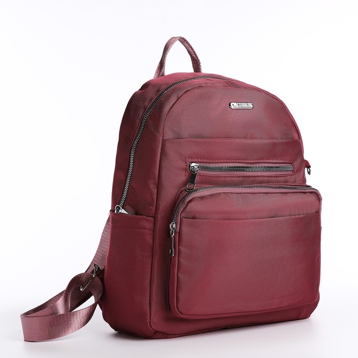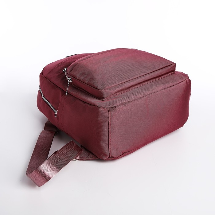 Рюкзак школьный на молнии, 5 наружных карманов, пенал, цвет бордовый