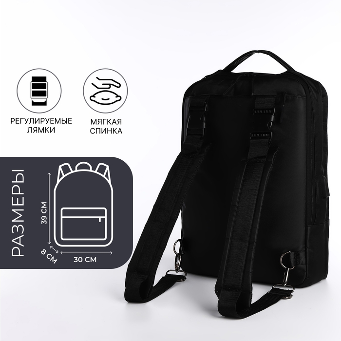 Рюкзак-сумка на молнии, 2 наружных кармана, цвет чёрный