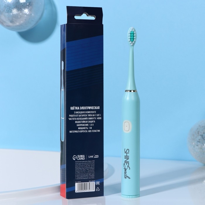 Электрическая зубная щётка Luazon LP-009, вибрационная, 8500 дв/мин, 4 насадки, 2хАА, синяя