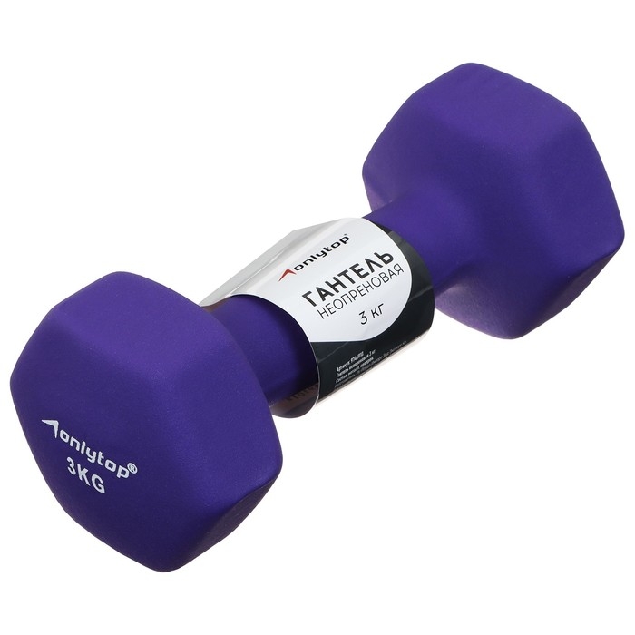 Гантель неопреновая ONLYTOP, 3 кг, цвет фиолетовый