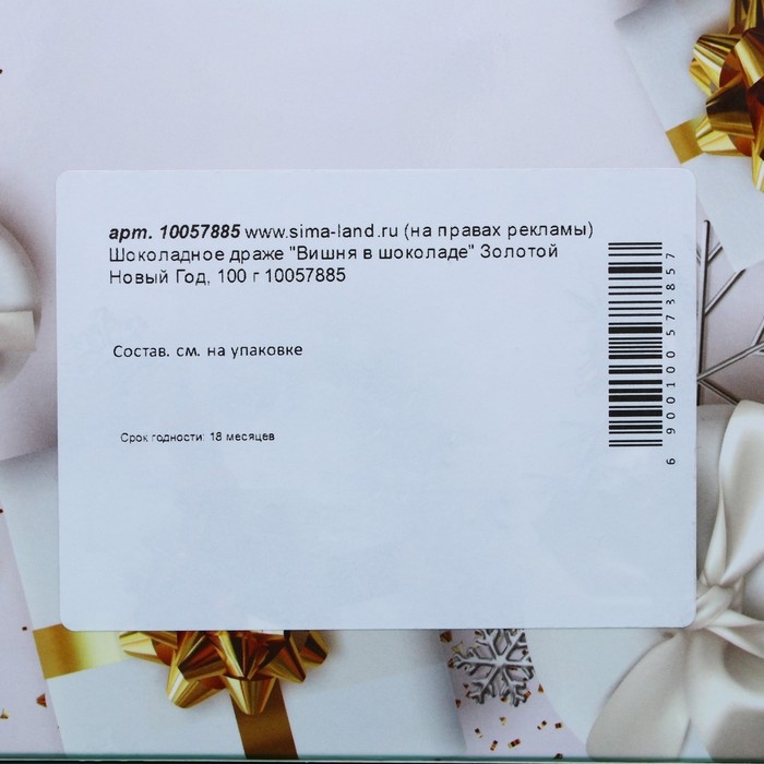 Шоколадное драже "Вишня в шоколаде" Золотой Новый Год, 100 г
