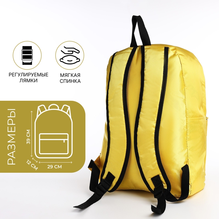 Рюкзак школьный на молнии, наружный карман, цвет жёлтый