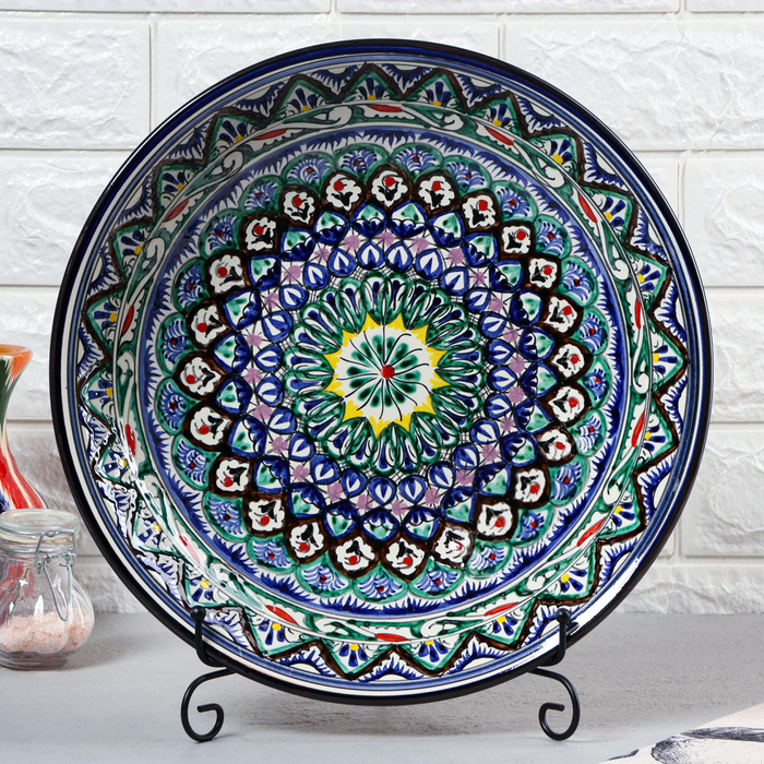 Ляган Риштанская Керамика "Узоры", 33 см, синий