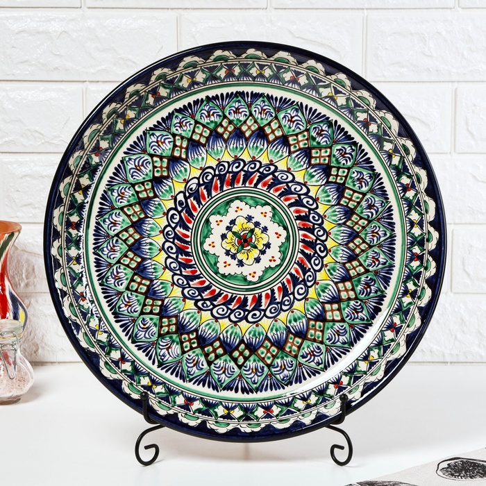 Ляган Риштанская Керамика "Узоры", 36 см, синий микс