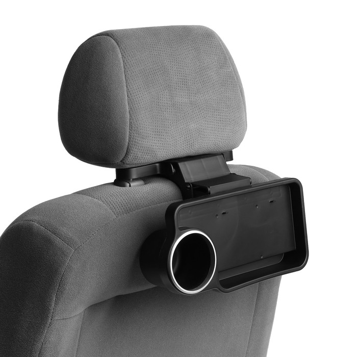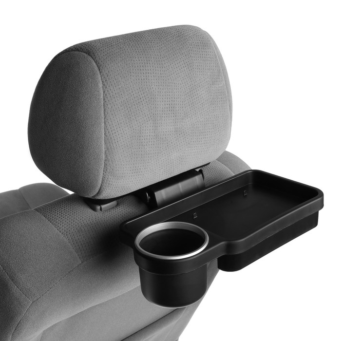 Столик с подстаканником для установки на подголовник сиденья автомобиля. Предназначен для комфортного размещения напитков и различных предметов во время поездки. Столик легко устанавливается и снимается, не занимает много места и не мешает обзору водителя.