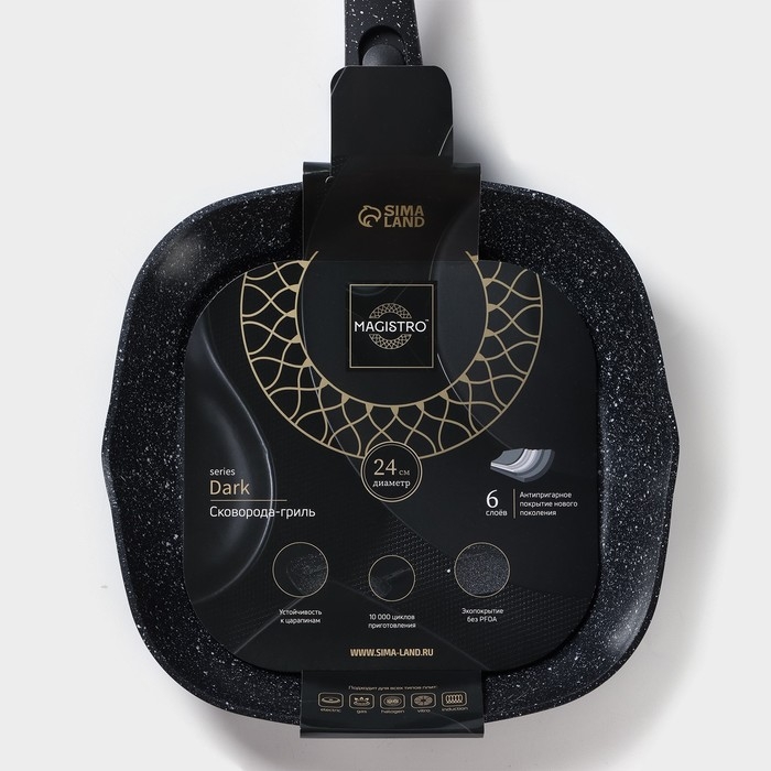 Сковорода гриль квадратная Magistro Dark, 24×24 см, ручка съёмная soft-touch, антипригарное покрытие, индукция, цвет чёрный