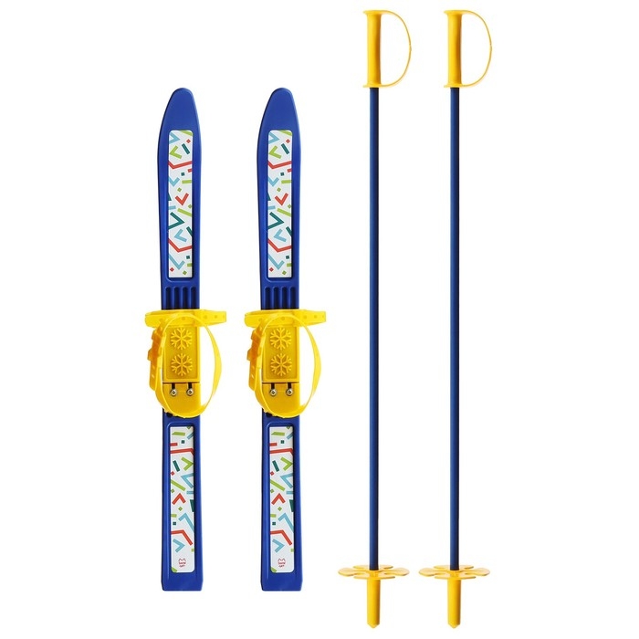 Лыжный комплект Baby, 70 см с креплениями и палками длиной 70 см, цвета микс