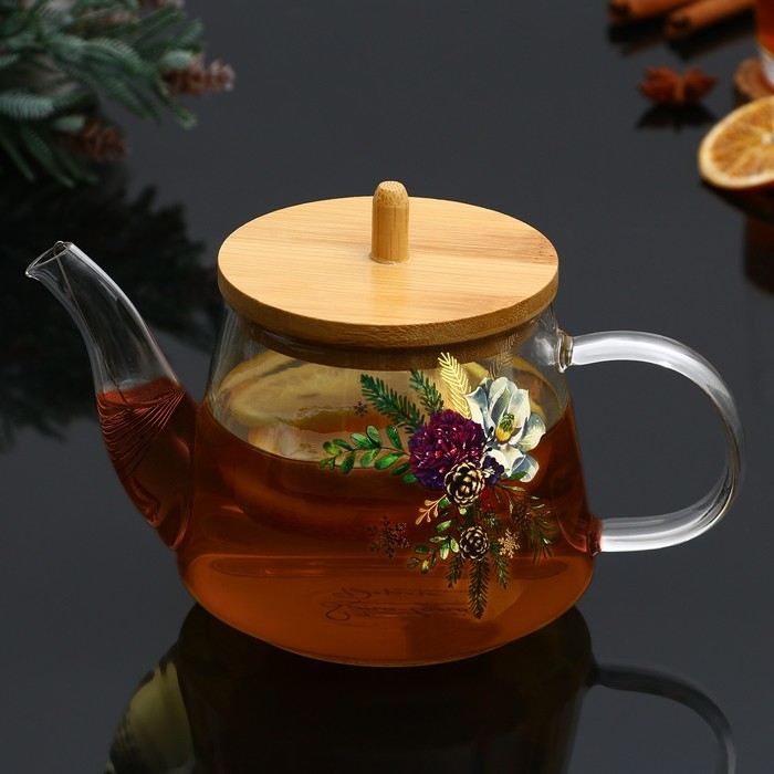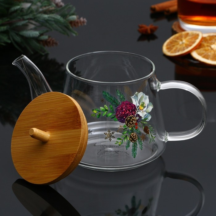 Новый год. Чайник заварочный стеклянный с бамбуковой крышкой «Зимние истории», 600 мл