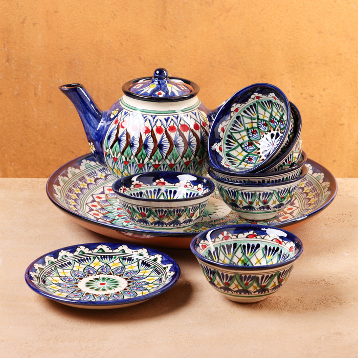 Набор чайный 9 предметов Риштанская Керамика (Чайник 0,8л,пиалы- 0,2)