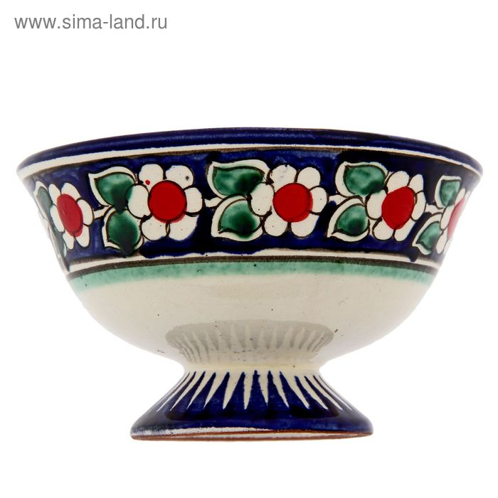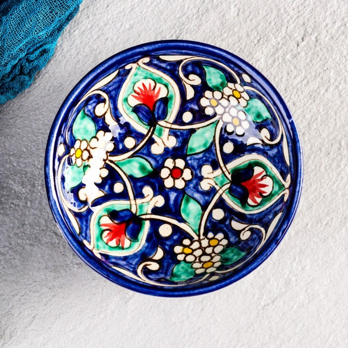 Конфетница Риштанская Керамика "Цветы", 12 см, синяя