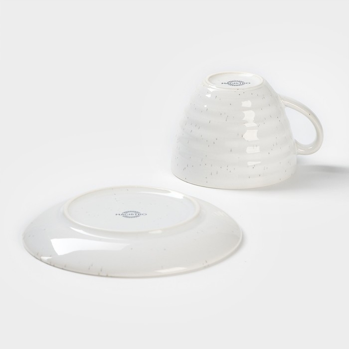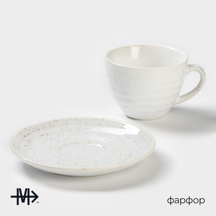 Чайная пара фарфоровая Magistro Urban, 2 предмета: чашка 200 мл, блюдце d=14,2 см, цвет белый в крапинку