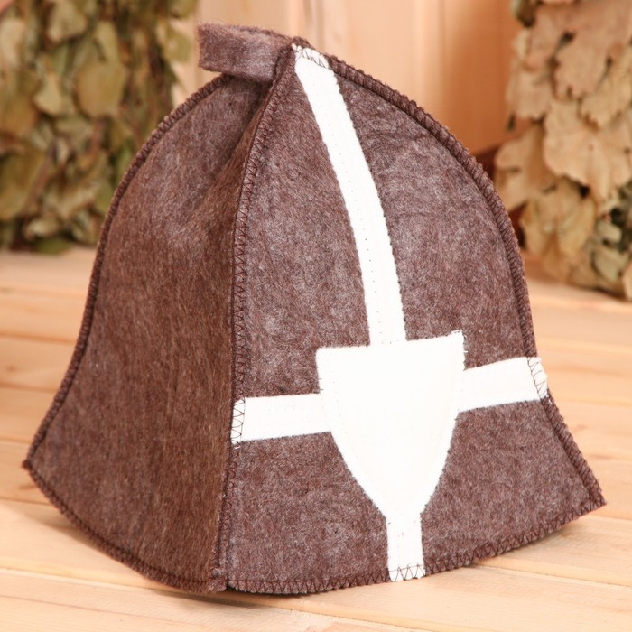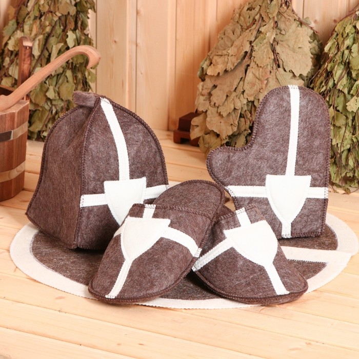 Набор подарочный 4 предмета коричневый "Крестоносец" (шапка, коврик, рукавичка,тапочки)