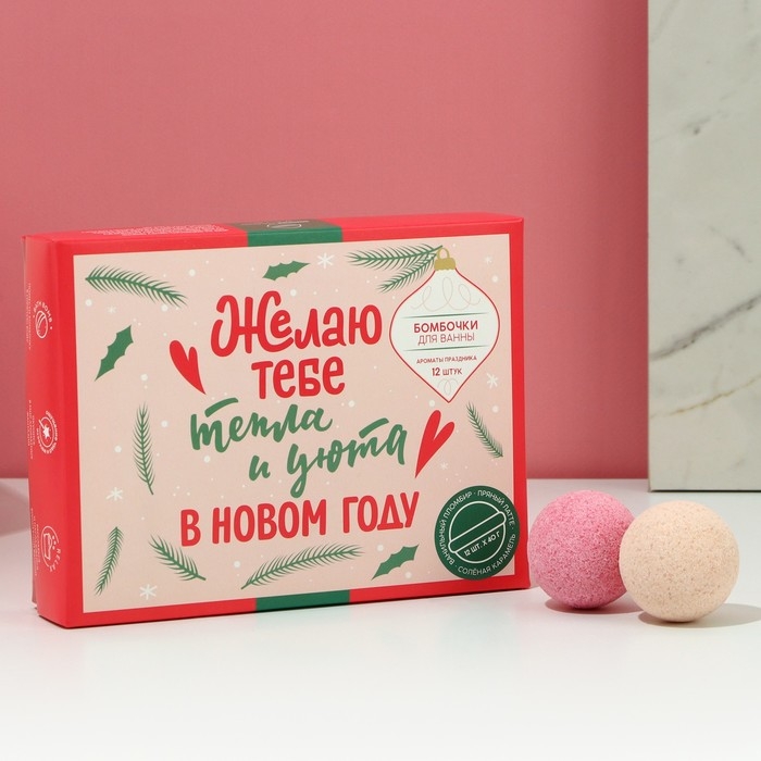 Подарочный набор косметики «Тепла и уюта в Новом Году!», бомбочки для ванны, 12 х 40 г, ЧИСТОЕ СЧАСТЬЕ