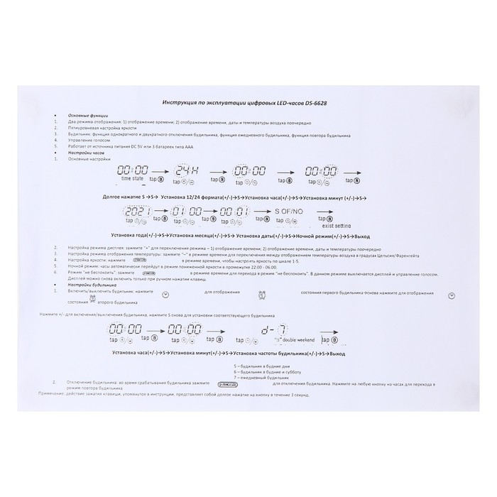 Часы настольные электронные с будильником, термометром, календарем и возможностью активациипо хлопку представлены в современном минималистичном дизайне. Интерьерные часы станут прекрасным декором для дома и дачи, их можно поставить как на прикроватную тумбочку в спальне, детской комнате, гостиной так и на стол или на комод в зале, холле или на кухне. Часы настольные обладают громким будильником, ребенку и вам будет комфортно просыпаться, на работу и в школу. Будильник не требует частой замены батареек благодаря экономичному механизму.