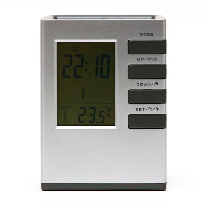 Часы - будильник электронные настольные: календарь, термометр, гигрометр, 16.8 х 6.6 см