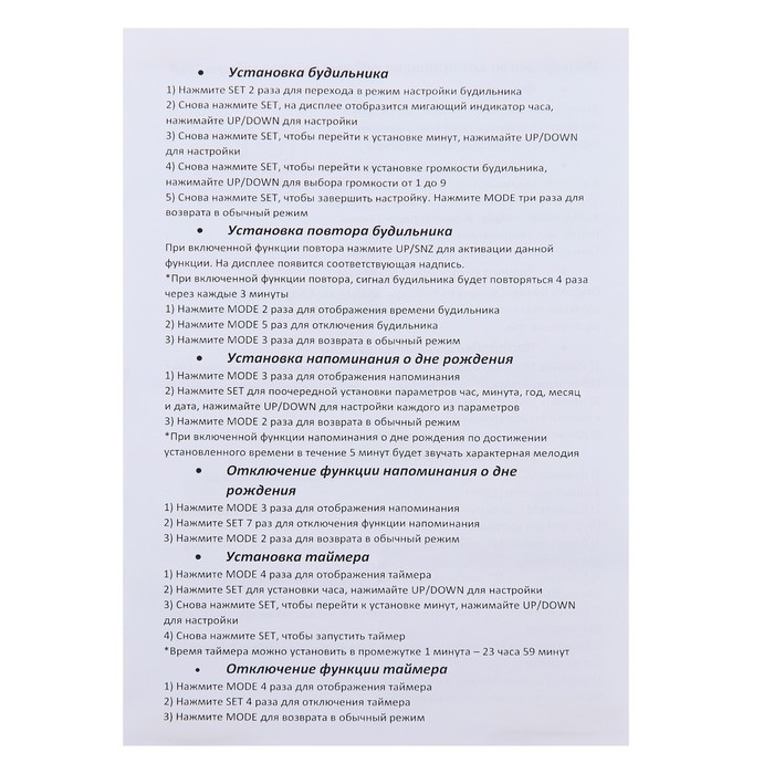 Часы-будильник электронные с календарем, термометром и органайзером представлены в современном минималистичном дизайне, они отлично впишутся в ваш интерьер. Интерьерные часы станут прекрасным декором для дома и дачи, их можно поставить как на прикроватную тумбочку в спальне, детской комнате, гостиной так и на стол или на комод в зале, холле или на кухне. Будильник настольный имеет кварцевый механизм, который гарантирует высокую точность хода. Часы настольные обладают громким будильником, ребенку и вам будет комфортно просыпаться, на работу и в школу. Часы на батарейках не требуют частой замены батареек благодаря экономичному механизму.