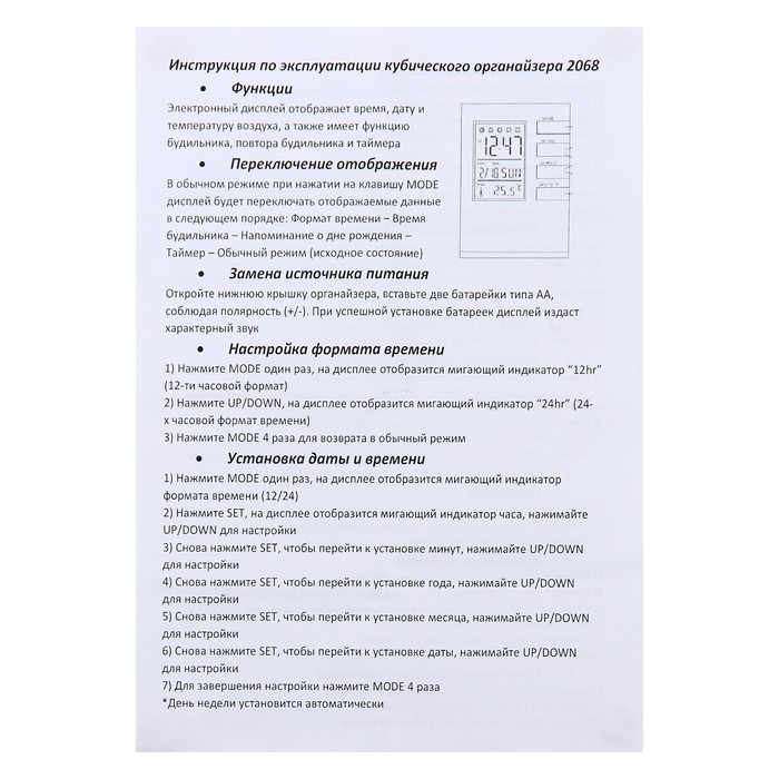 Часы-органайзер настольные электронные: будильник, термометр, календарь, гигрометр,8х10.8 см