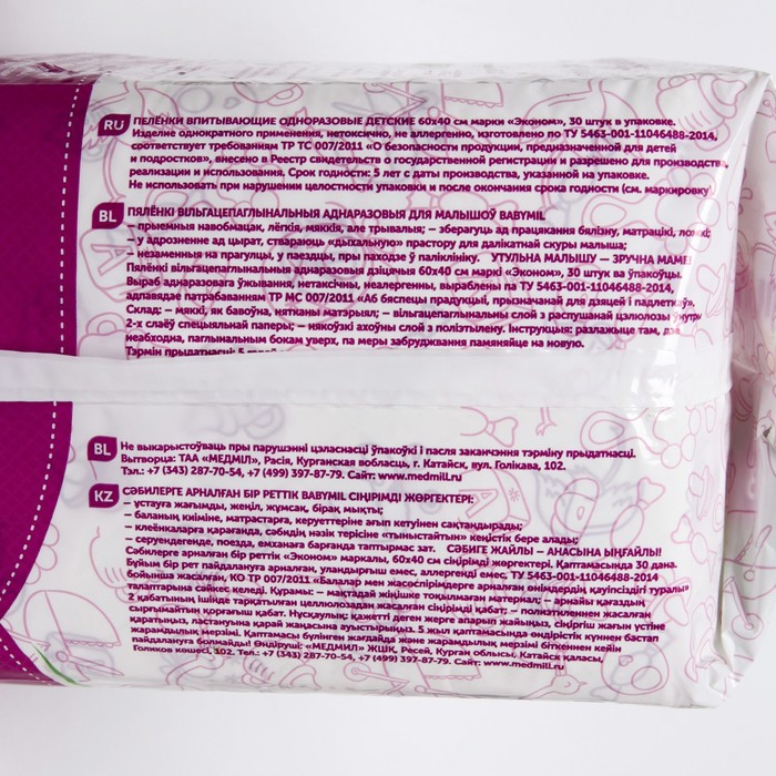Пеленки впитывающие одноразовые «Babymil» Эконом, 60*40, 30 шт