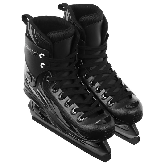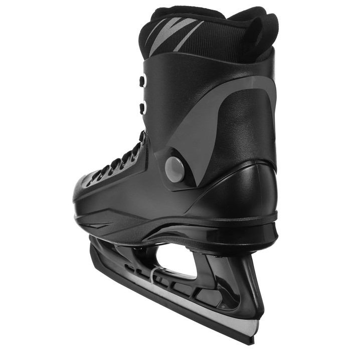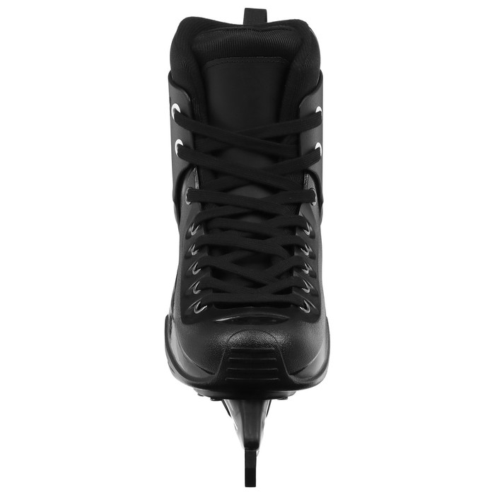 - Основа ботинка: морозоустойчивый пластик. Жёсткий материал создаёт надёжную защиту от попадания шайбы. Пластиковый носок обеспечивает стойкость изделия к порезам и истиранию.