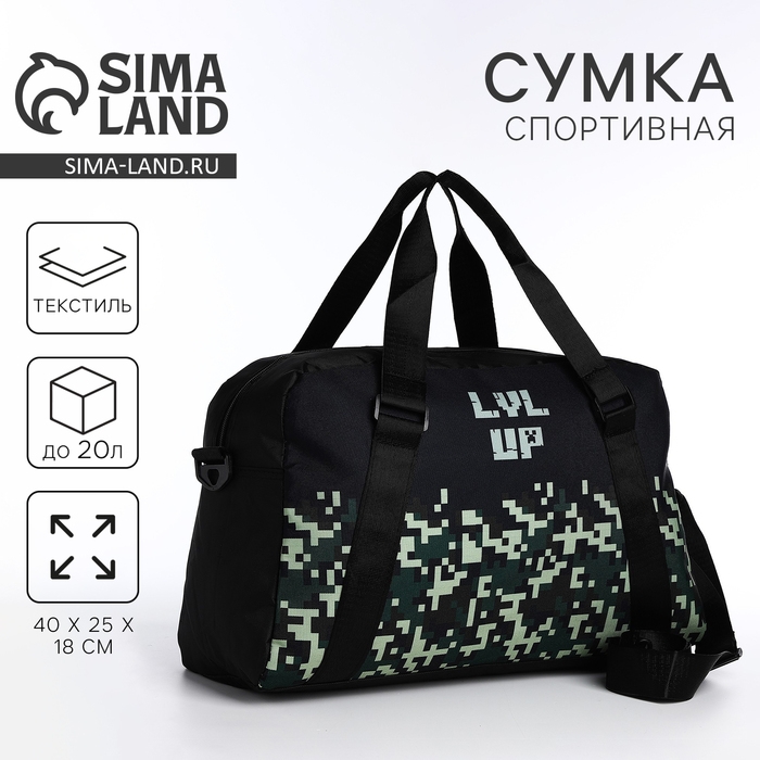 Сумка детская спортивная для мальчика «Пиксельный мир» 40х25х18, отд на молн, дл ремень, чёрный цвет