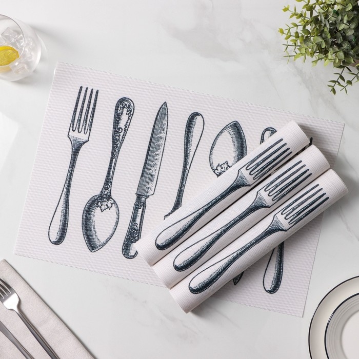 Салфетки сервировочные на стол Доляна «Сервировка», 4 шт, 30×45 см, цвет белый