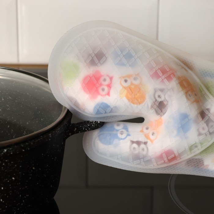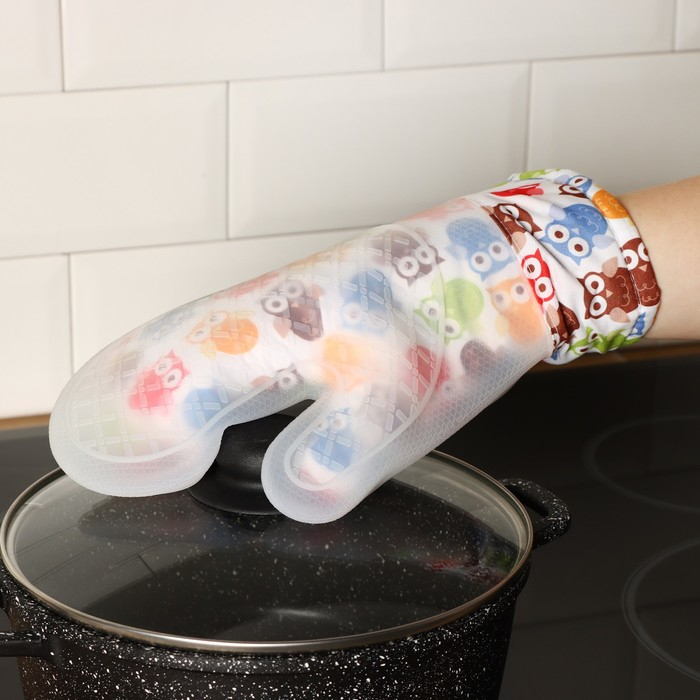 Рукавица для горячего Доляна «Совы», силикон, 28×19 см