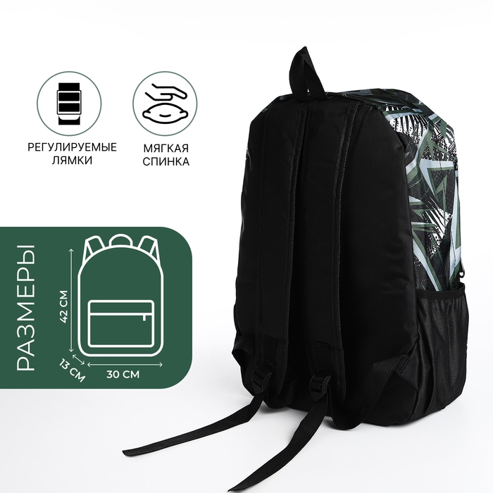 Рюкзак школьный из текстиля на молнии, 3 кармана, зелёный