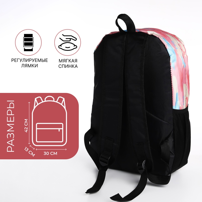 Рюкзак школьный из текстиля, 3 кармана, цвет розовый