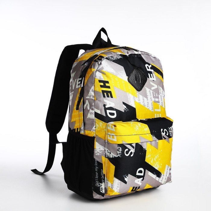 Рюкзак школьный из текстиля на молнии, 3 кармана, цвет жёлтый