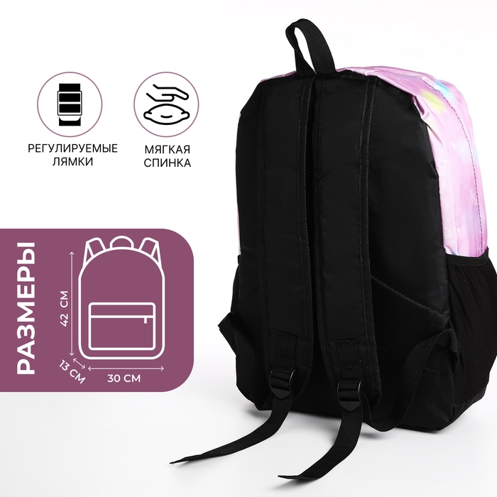 Рюкзак школьный на молнии, 3 наружных кармана, цвет сиреневый