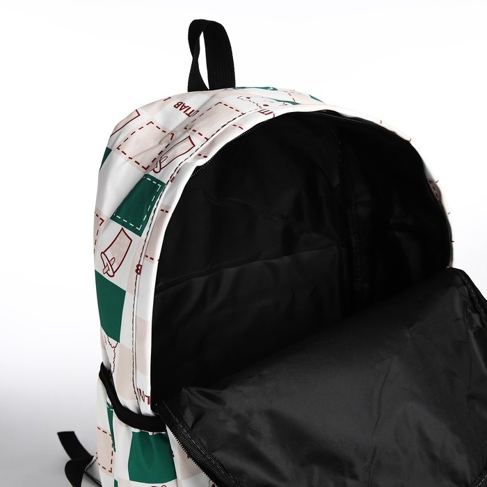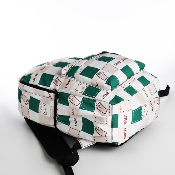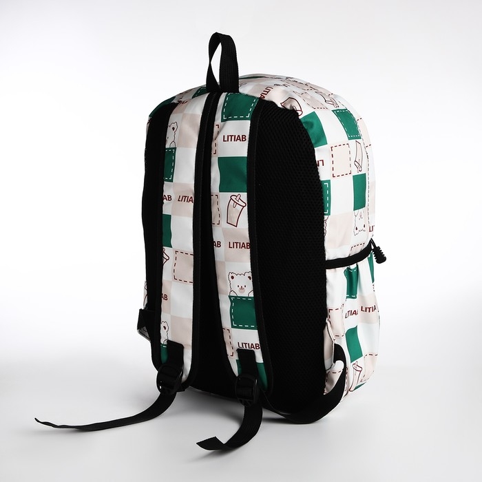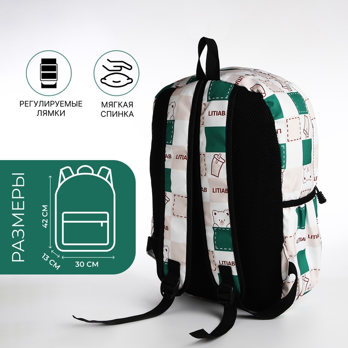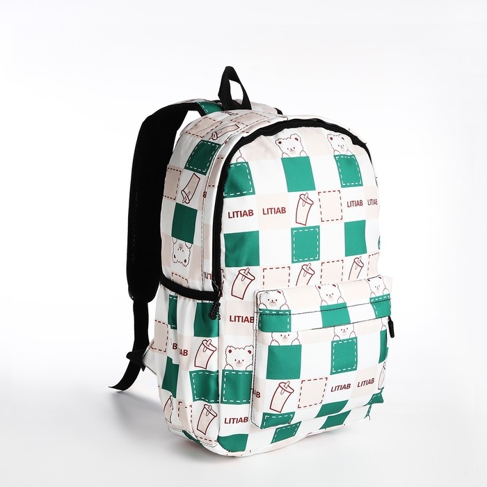 Рюкзак школьный из текстиля, 3 кармана, цвет молочный/зелёный