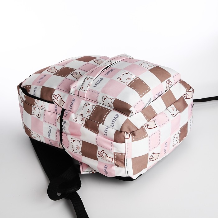 Рюкзак школьный из текстиля, 3 кармана, цвет бежевый/розовый