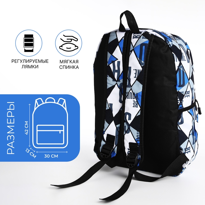 Рюкзак школьный на молнии, 3 наружных кармана, цвет чёрный/синий/серый