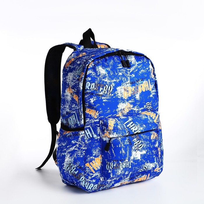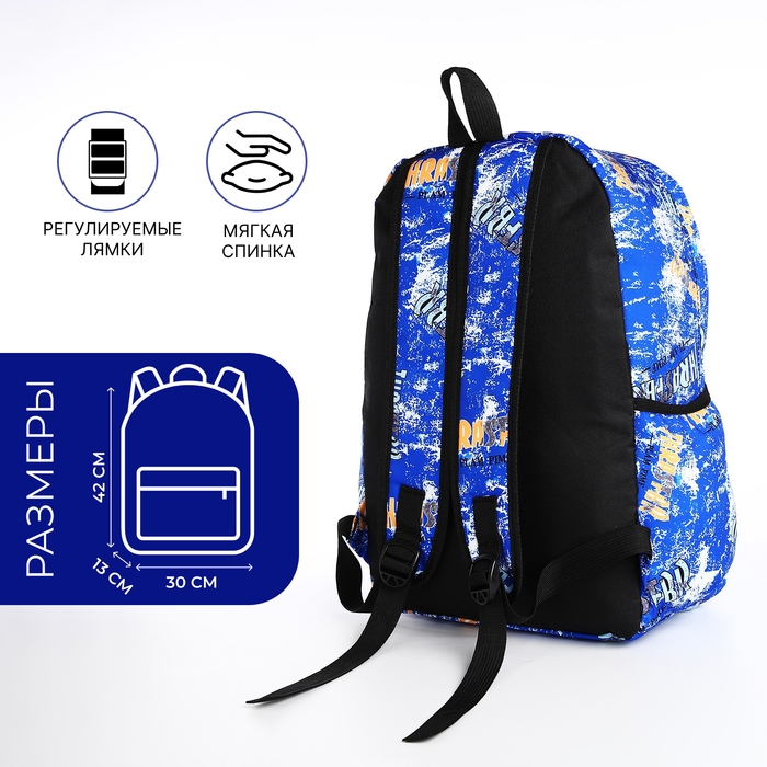 Рюкзак школьный из текстиля на молнии, 3 кармана, цвет синий