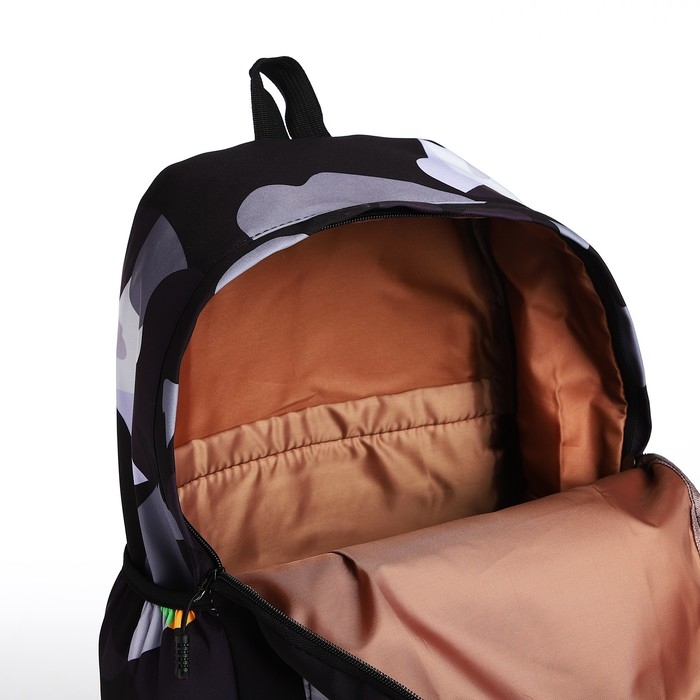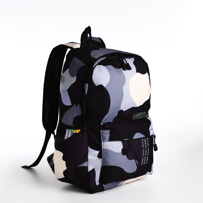 Рюкзак школьный из текстиля, 3 кармана, цвет чёрный/серый