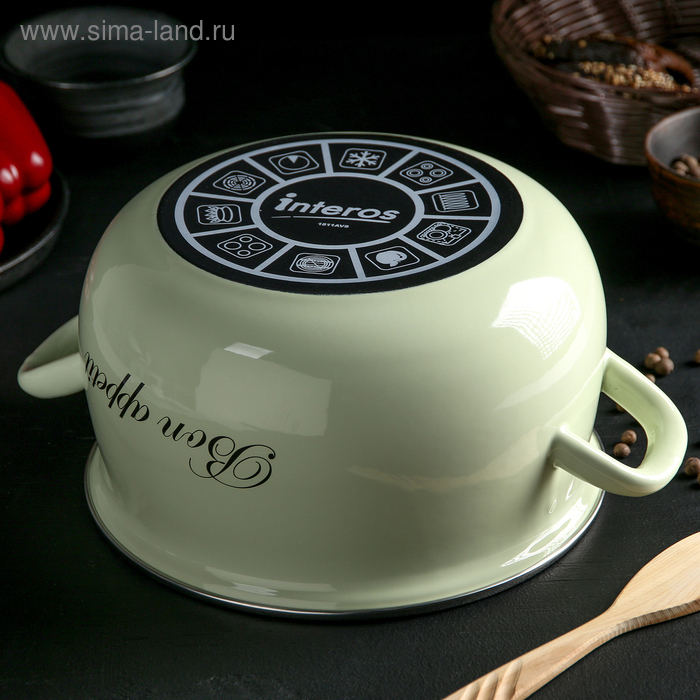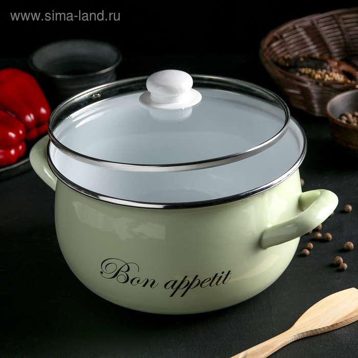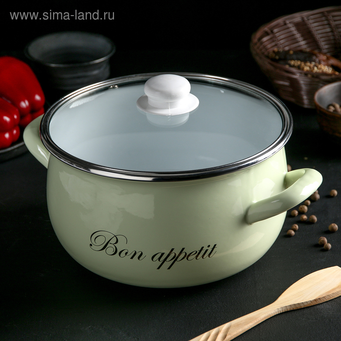 Кастрюля эмалированная «Лайм», 5.1 л, стеклянная крышка, индукция, цвет светло-зелёный