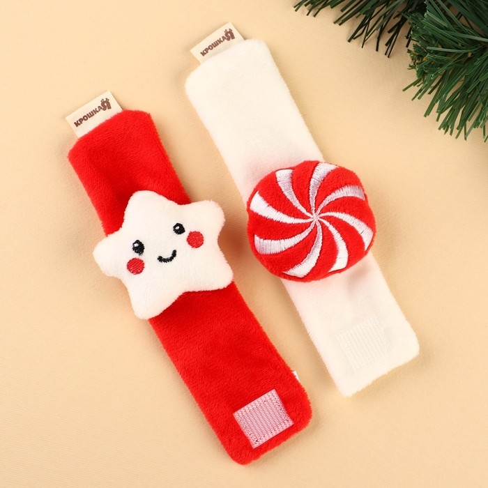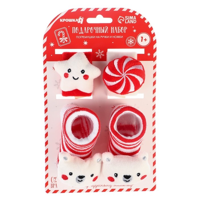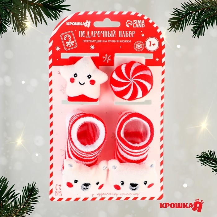 Подарочный набор новогодний: браслетики - погремушки и носочки - погремушки на ножки «Сладости», Крошка Я