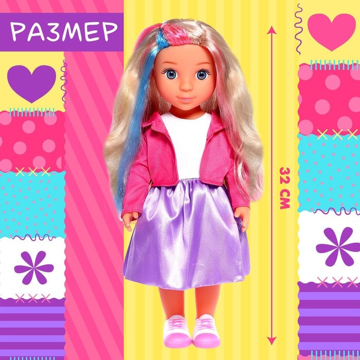 - Удобный размер. Высота куклы 32 см, поэтому она легко поместится в руке ребёнка.