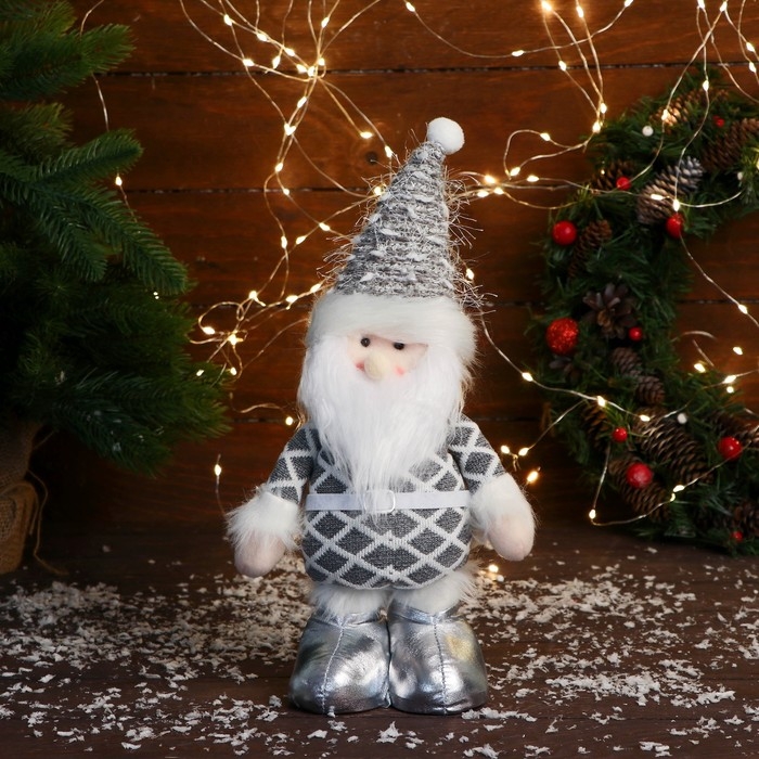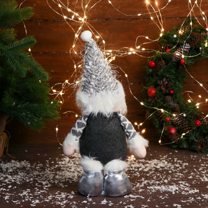 Мягкая игрушка "Дед Мороз в костюме с ремешком" 16х30 см, серый