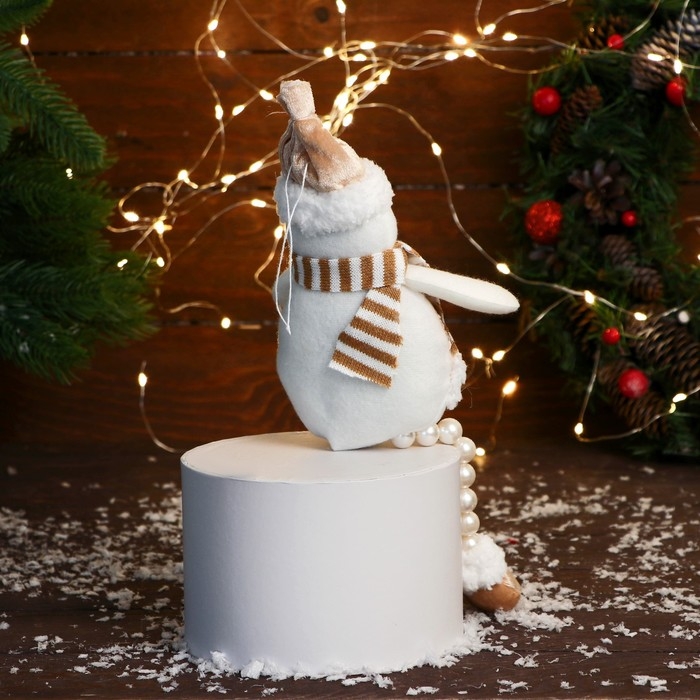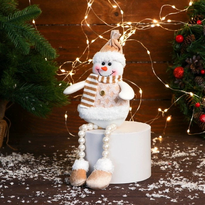 Мягкая игрушка "Снеговик в полосатом шарфе, ножки-бусинки" 10х30 см, золото